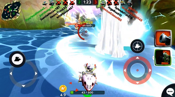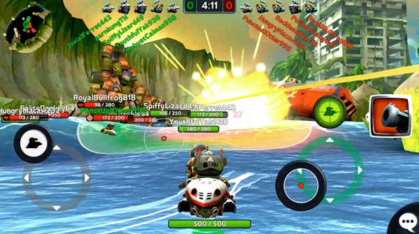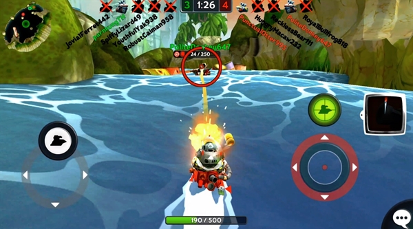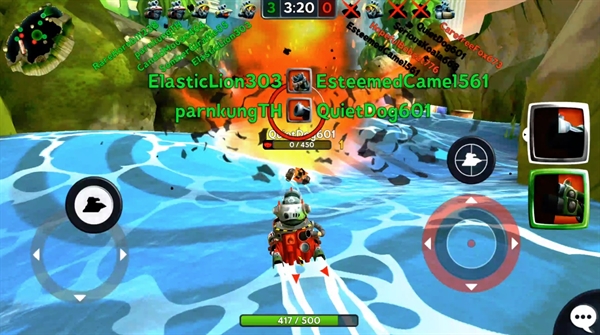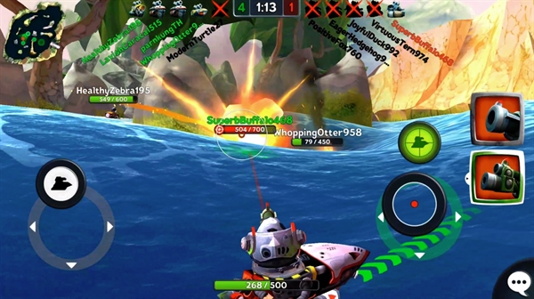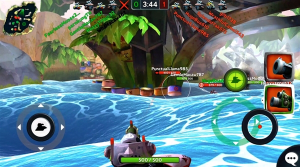 เท่าที่ลองอาวุธในการเล่นนั้น พบได้ว่าอาวุธในเกมนี้มีหลากหลายมาก และมีให้เลือกใช้หลายแบบ ตั้งแต่ปืนยิงระยะไกลแบบสไนเปอร์ , ปืนช็อตไฟฟ้าที่จะสร้างความเสียหายต่อเนื่อง ไปจนถึงการยิงตอร์ปิโดเพื่อลอบยิงอีกฝ่ายจากระยะไกล (ซึ่งให้อารมณ์คล้ายๆ เล็งยิงของ Angry Birds นิดๆ) คนเล่นสามารถเลือกซื้อหรือใช้ได้เลยว่าอยากใช้อาวุธแบบไหนประดับเรือยนต์ตัวเอง