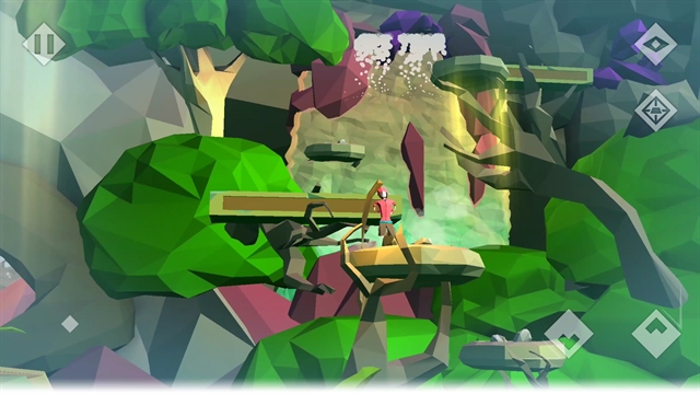 เขียนแบบนี้คงนึกภาพไม่ออกแน่ ยกตัวอย่างนะครับ ถ้าคุณเจอทางที่ต้องกระโดดแต่มันไกลเกินไป คุณต้องเอียงมือถือมาทางซ้าย ฉากทางขวาจะขยับเอียงมาเหมือนอยู่ใกล้ๆ จุดที่ตัวละครยืนทางซ้าย ตอนนั้นตัวละครจะสามารถกระโดดข้ามไปได้ หรือถ้าจะกระโดดข้ามไปอีกฝั่งที่อยู่ชั้นล่าง ก็ต้องเอียงมือถือขึ้นไปข้างบน เพื่อให้ฝั่งที่อยู่ข้างล่าง เลื่อนมุมมองมาใกล้ๆ กับตัวละคร แล้วตัวละครจะกระโดดข้ามไปได้ครับ