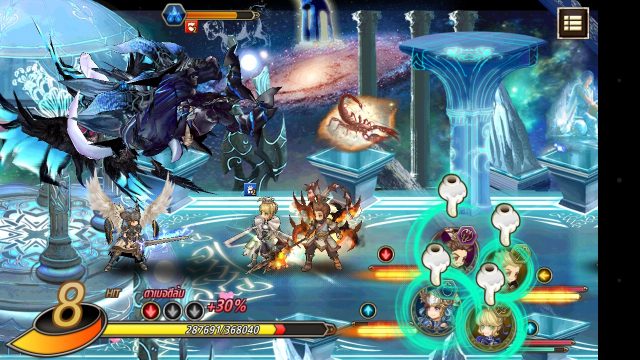 ในฉากต่อสู้ ตัวละครเราจะสามารถโจมตีได้สูงสุด 3 ครั้งต่อรอบ โดยการแตะที่รูปตัวละครหลายๆตัวต่อเนื่องกันจะกลายเป็นคอมโบออกมา และเมื่อเกจสกิลเต็ม ให้ใช้นิ้วปัดขึ้นก็จะสามารถใช้สกิลออกมาได้ สำหรับโหมด Auto ต้องผ่านด่านที่ 5 เป็นต้นไปจึงจะใช้ได้ ซึ่งระบบ Auto จะโจมตี ทำคอมโบ และใช้สกิลได้อัตโนมัติ