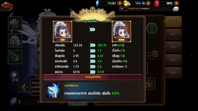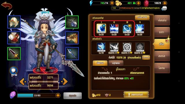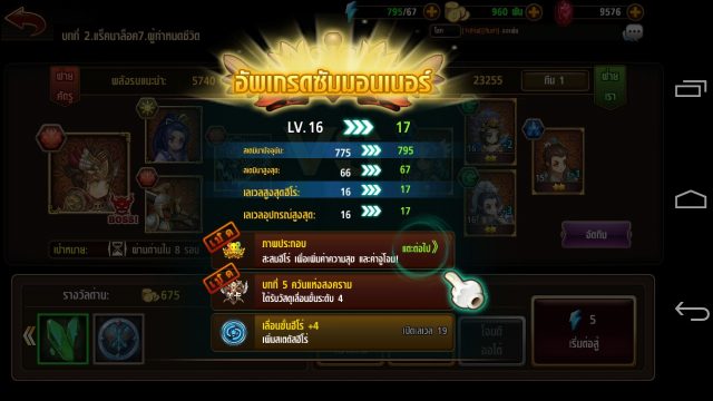 อัพเกรดฮีโร่ : เก็บจิตวิญญาณเพื่อเลื่อนขั้นฮีโร่ เมื่อเลื่อนขั้นได้ +1 จะได้รับสกิลเพิ่ม