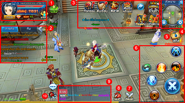 - เมนูแสดงระบบต่างๆ ทั้ง ล่าสมบัติ,ดันเจี้ยน,ตลาด,กิจกรรมและสิทธิประโยชน์ต่างๆ ของผู้เล่น