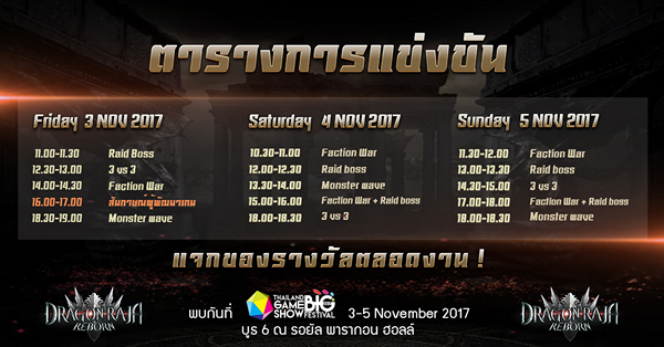 Dragon Raja Reborn จัดเต็มพิเศษเฉพาะงาน TGS เปิดสังเวียนแข่งสุดมันส์ตลอดวัน พร้อมกิจกรรมลุ้นรับรางวัลมูลค่ารวมกว่า 500,000 บาท!