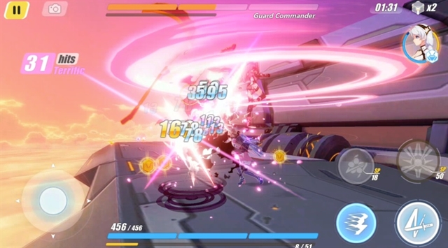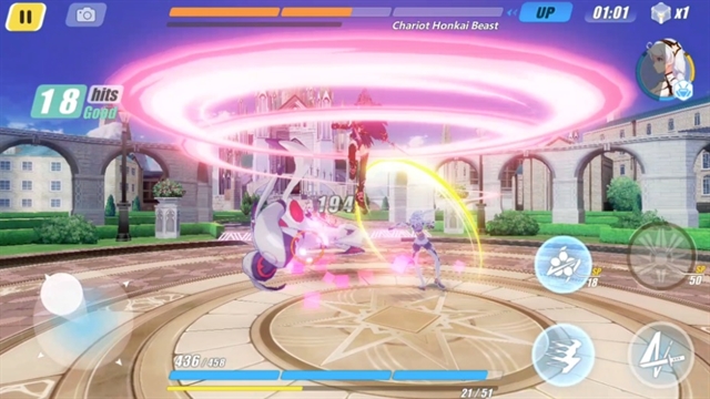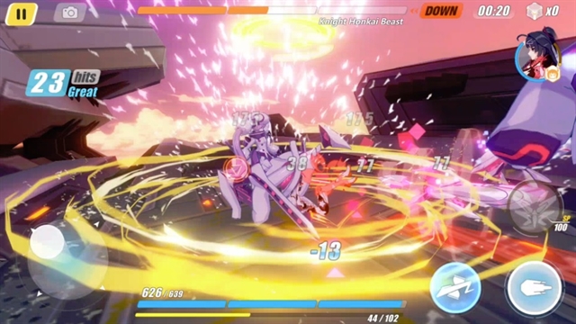 พูดถึงการสร้างความเสียหายต่อเนื่อง เกมนี้ระบบการกดโจมตีที่ค่อนข้างหลากหลาย เนื่องจากแต่ละตัวละครนั้นจะใช้อาวุธต่างกัน และจะมีท่ากดต่างกัน เช่น ตัวเอกของเรื่อง Kiana (ผมสีขาว) จะต้องกด ทัช – ทัช และ ทัชค้าง จะเป็นท่า ส่วน Mei จะกด ทัช – ทัช ก็จะเป็นท่าได้เลย กดนอกจากนี้ตัวละครยังจะมีสกิลที่รอคอยการปลดล็อคเมื่อเลเวลอัพอีกด้วย แถมอีกอัน เป็นการใช้ท่าไม้ตายของวาลคีเรีย ซึ่งจะสร้างความเสียหายอย่างมหาศาล ทั้งหมดนั้นจะต้องใช้ค่า SP ซึ่งจะได้จากการโจมตีศัตรูในเกมนี้ คนเล่นสามารถเลือกได้เลยว่า จะโจมตีหรือใช้สกิลแบบไหนในการเล่น