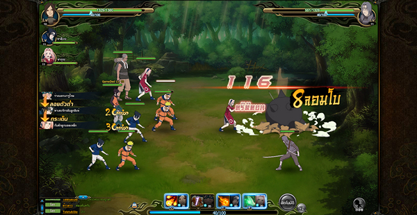 เห็นแบบนี้ก็อย่าเพิ่งส่ายหน้าหนีเพราะตัวเกมส์ Naruto Online แม้ดูภายนอกอาจจะไม่ต่างจากเกมส์อื่นๆ แต่พอได้ลองเเล้วจะรู้ว่าความมันส์ของเกมส์นี้แตกต่างจากเกมส์แนว Turn-based ทั่วไป ด้วยการเสริม ระบบคอมโบระหว่างตัวละคร ที่มีความพริ้วไหวจนบางจังหวะนึกว่าเล่นเกมส์ Action อยู่เลยทีเดียว แถมตัวละครหลักที่เราเลือกมาตั้งแต่ต้นเกมส์นั้นมีสกิลให้เราเลือกใช้ได้หลากหลายได้ตามสถานะการณ์ สามารถปรับเปลี่ยนเพื่อให้เข้ากับแผนการเล่นได้หลากหลายตลอดเวลา