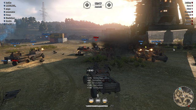 …..และเมื่อเราเล่นผ่านด่านมาสักพัก ก็จะได้เริ่มเข้าสู่สงครามของจริงสักที ต้องขอบอกก่อนเลยว่าตอนนี้ หาห้องในการเล่นได้ไวมากๆ และตอนนี้ผู้เล่นแต่ละคนสายโหดทั้งนั้น แค่เริ่มเกม ก็ออกตัวล้อฟรี พุ่งไปข้างหน้า ซึ่งบรรยากาศภายในเกมตอนนี้ต้องบอกเลยว่าเดือดสุดๆ วันนี้ทางเราจึงนำเก็บภาพมาให้ดูกันว่า ตอนนี้ในเกมกำลังดุเดิือดขนาดไหน กับเกม Crossout แต่ง ซิ่ง ยิงแหลก