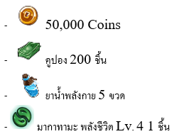 – เปิดคัมภีร์ผนึก ครบ 50 ชิ้น จะได้ คัมภีร์ผนึก (7วัน) 3 ชิ้น