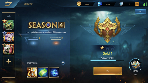 ROV ระบบ Rank ของ ROV จะเป็นการสะสมดาวโดยเมื่อเราชนะจะได้รับดาวหนึ่งดวงแต่หากแพ้ก็จะเสียดาวไปหนึ่งดวงเช่นกัน ดังนั้นเราจะต้องชนะติดต่อกันจึงจะสามารถเลื่อนขั้นได้