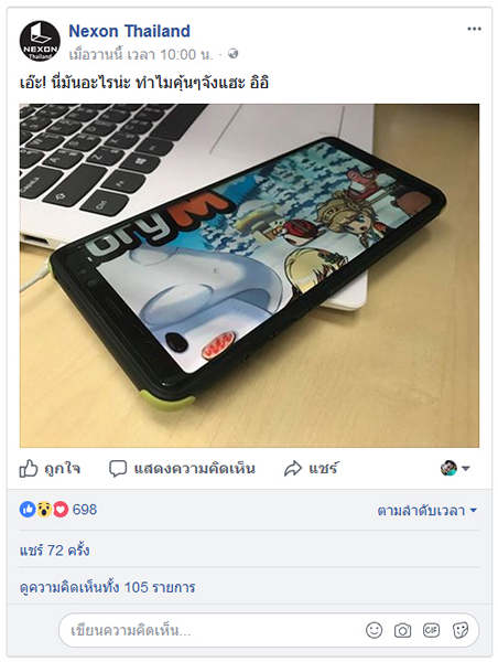 แต่ปริศนาในครั้งนี้จะค่อนข้างชัดเจนกับภาพบนมือถือ แม้จะเห็นเพียงแค่ตัวอักษร oryM ก็ไม่ต้องเดากันแล้วว่าเกมส์ตัวต่อไปของ NEXON Thailand ก็คือ Maple Story M นั่นเอง ซึ่ง Maple Story M ขึ้นชื่อในเรื่องของอารมณ์ที่ใกล้เคียงกับเวอร์ชั่น PC มากที่สุด แบบนี้อยู่บ้านก็เล่นเวอร์ชั่น PC ไปข้างนอกก็มี Maple Story M มาให้เล่นกันต่อ ถ้าอนาคตสามารถรวมทั้งสองเวอร์ชั่นให้มาเจอกันได้หล่ะก็คงดีไม่น้อย สาวก Maple Story รอฟินกันได้เลย