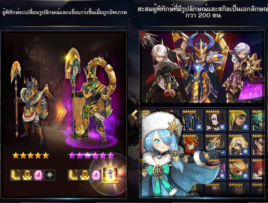 ขอยกให้ตัวละครเป็นอันดับแรกก่อน ในเกมเราจะเรียกว่า ผู้พิทักษ์ เพราะว่าผู้พิทักษ์มีมากมายหลายแบบ มากกว่า 200 ตัวได้ ซึ่งแถมยังมีการพัฒนาดาวให้เปลี่ยนสภาพเจ๋งๆ ขึ้นไปอีก แน่นอนค่ะ ยิ่งดาวเยอะ ยิ่งอลังการ มูฟเม้นต่างๆ ทำได้ละเอียดมากทั้งการโจมตี หรือเอฟเฟคท่าไม้ตาย เพราะตัวละครต่างๆ ก็จะมีสกิลพิเศษที่แตกต่างกันไป ยิ่งดูข้อมูลเยอะ ยิ่งอยากได้อยากกด ใครสายสะสม ก็ต้องเปย์กันหน่อยนะคะ