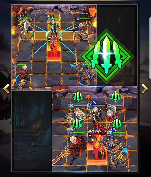 เมื่ออยู่ในจุดที่ฝ่ายเรานั้นสามารถโจมตีได้ด้วย ก็จะเกิดการโจมตีร่วมโดยอัตโนมัติ ไม่ต้องใช้ AP จะเกิดเส้นสีๆ จากตัวผู้พิทักษ์ไปสู่ตัวศัตรู ซึ่งการโจมตีร่วมนั้นจะสร้างความรุนแรง และเกิดคริติคอลสูงมาก เราต้องพยายามเดินหมากให้อยู่ในจุดที่เกิดการโจมตีร่วมให้มากที่สุด แต่… นั้นก็หมายความว่า ศัตรูก็สามารถโจมตีร่วมได้ด้วยเช่นกันนะ