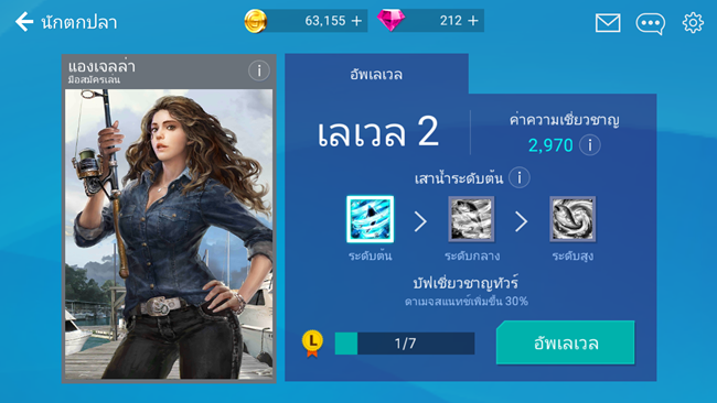 - เป็น icon แสดงนักตกปลาที่อยู่ในทีมเราซึ่งเมื่อเราเก็บพลังสะสมถึงในระดับที่กำหนดก็จะสามารถปล่อยพลังพิเศษของตัวนั้นๆ ออกมาที่บอกเกมนี้มีกลิ่นอายแนว RPG ก็ด้วยระบบนี้แหละ เพราะความสามารถของนักตกปลาแต่ละตัวก็จะแตกต่างกันออกไป และนักตกปลาก็ได้แบ่งระดับออกตามความหายากอีกด้วย
