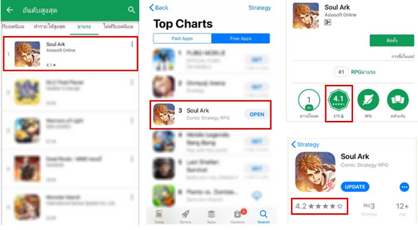 หลังจากที่เกมมือถือใหม่ Soul Ark ศึกฮีโร่สะท้านฟ้า เกม Fantasy RPG จาก PLAYPARK.com ได้เปิดให้บริการการไปเมื่อวาน (23 พ.ค.61) ก็ได้รับกระแสตอบรับจากเกมเมอร์เป็นอย่างดี ทำให้วันนี้ (24 พ.ค.61) ใน Google Play ขึ้นอันดับ 1 ของเกมมาแรง (Trending) และติดอันดับ 3 ใน App Store เกมแนว Strategy นอกจากนี้เกมเมอร์ยังรีวิวให้ดาวค่อนข้างสูงอีกด้วย เป็นอีกหนึ่งเสียงที่การันตีความมันส์