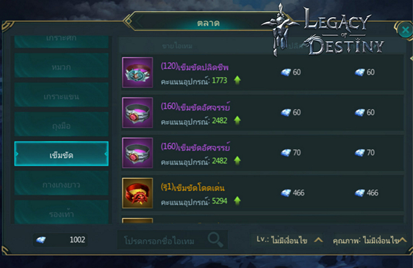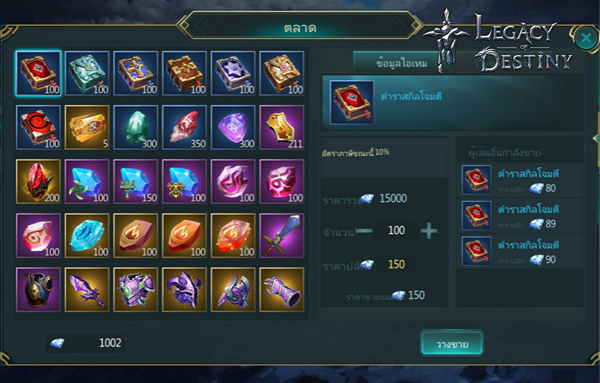 ระบบตลาดจะทำการปลดล็อคเมื่อตัวละครของผู้เล่นมี เลเวล 80 ขึ้นไป ท่านสามารถเลือกไอเทมที่ต้องการขาย กำหนดราคาและจำนวนที่ต้องการขายได้ด้วยตัวเอง เมื่อประกาศขายไอเทมแล้วก็รอนั่งรับเพชรได้เลยค่ะ ใน Legacy of Destiny ท่านสามารถขายได้ทั้งอุปกรณ์และไอเทมต่าง ๆ ที่ท่านอยากขายได้แบบไร้ข้อจำกัด