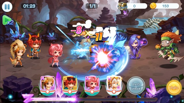 จึงทำให้คนเล่นจะต้องเริ่มคิดแล้วว่าจะให้ตัวละครไหนใช้สกิลดี และสถานการณ์ไหนควรจะใช้สกิลอะไร แต่เกมนี้มีระบบการเข้าปะทะที่ไว ใช้เวลาเฉลี่ยในการเล่นจบเกมไม่ถึงนาที จึงทำให้เกมเพลย์ของเกมนี้ไว จึงทำให้ไม่ต้องเสียเวลาในการรอนานเท่าไหร่ (และถ้าศัตรูเก่งกว่าทีมคนเล่น ถ้าตัวละครเราตายก็จะตายแบบไวๆ เลย ซึ่งช่วงด่านหลังๆ ก็ต้องระวังหน่อยเพราะเกมจะไม่มีการแจ้งเตือนหรือสัญญาณบอกเรา เราต้องดูดีๆ