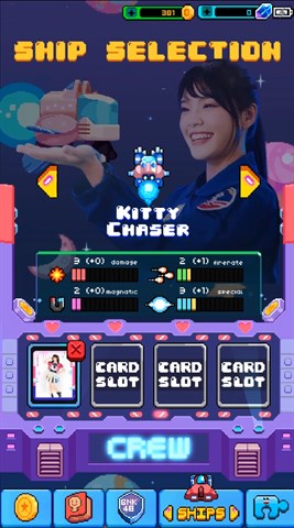 การอัพเกรดยานนั้นจะเป็นการสะสมชิ้นส่วนของการ์ดตัวละคร (เท่าที่เล่นมานั้นจะเป็นการสุ่ม) โดยเมื่อสะสมครบก็จะได้การ์ดของเมมเบอร์คนนั้นมาให้ชม แล้วก็สามารถติดตั้งได้เลย เกมจะมีการอัพเกรดและพัฒนาแค่นี้ แปลว่าคนเล่นจะเน้นในการเพิ่มความสามารถในการยิงผ่านการเก็บดาวจากในการเล่นอย่างเดียว