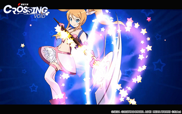 Kirino ใน “Dengeki Bunko: Crossing Void” จะแปลงร่างเป็น Meruru แล้วรวมพลังเป็นธนูแสงใส่สัตรู สร้างดาเมจทั้งทางกายภาพและเวทย์อย่างสูง