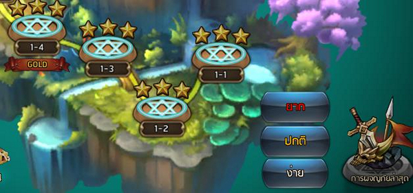 ระดับความยากง่ายของแต่ละบท ระบบผจญภัยแบ่งออกเป็น 3 ระดับ คือ ง่าย ปกติ และยาก ซึ่งแต่ละระดับนั้นก็จะมีความโหดแตกต่างกันไป และไอเทมที่ได้รับก็จะดีมากขึ้นตามระดับที่สูงขึ้น การจะปลดล็อคระดับต่อไปได้นั้น ผู้เล่นจะต้องเคลียให้ครบทั้งหมด 8 บท เช่น ผ่านครบ 8 บท แบบง่าย ระบบจะปลดล็อค บทระดับปกติมาให้เล่น