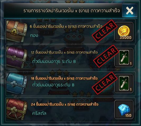 การรับกล่องสมบัติ ในแผนที่ผจญภัย เมื่อผู้เล่นสามารถเคลียด่านไปได้จำนวนหนึ่ง จะมีกล่องสมบัติให้เปิด ซึ่งจะได้รับไอเทมแบบฟรี รวมไปถึงหินคริสตัลด้วย การจะเปิดกล่องผจญภัยได้ครบนั้น ผู้เล่นจะต้องเคลียด่านตามเงื่อนไขที่ระบบตั้งเอาไว้ เพื่อสะสมดาวประจำด่านนั้นๆ