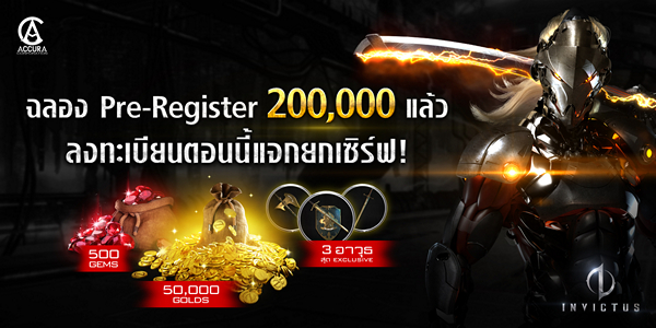 ทางทีมผู้สร้างอย่าง “True axion interactive” และทีมผู้จัดจำหน่าย “Accura Thailand” มีข่าวที่น่ายินดีมาแจ้งให้เหล่าเกมเมอร์ได้ทราบว่า ตอนนี้เกม INVICTUS: Lost Soul (อินวิคตัส: ลอส โซล) มียอดลงทะเบียนล่วงหน้าทั่วประเทศมากกว่า 2 แสน