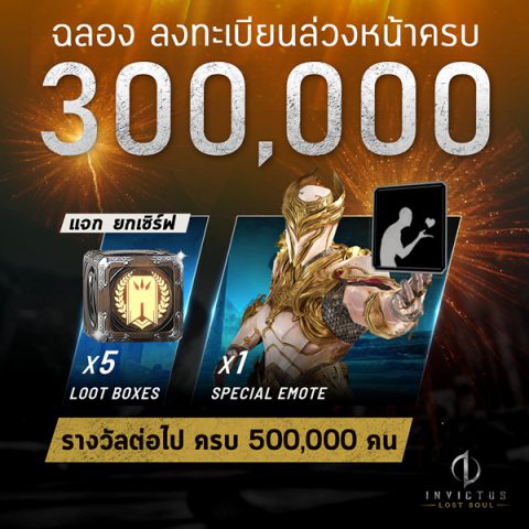 เกม INVICTUS: Lost Soul (อินวิคตัส: ลอส โซล) มียอด ลงทะเบียนล่วงหน้า ทั่วประเทศ มากกว่า 3 แสน เพราะฉะนั้นใครที่มาลงทะเบียนตอนนี้ได้รับของแจกแน่ๆ x5 Loot Boxes 1 Emote ยกเซิร์ฟ!!ฟรี!