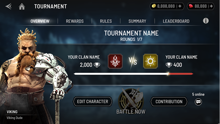 Clan Tournament เป็นระบบการต่อสู้เพิ่มเติมที่เปิดโอกาสให้ผู้เล่นในแคลนต่างๆสามารถมาประลองฝีมือในการต่อสู้ที่มีสถานการณ์ต่างออกไปจากการต่อสู้ในโหมด PVP ทั่วไป โดยการต่อสู้ในระบบ Clan Tournament ผู้เล่นจะได้ต้องทำการเก็บคะแนนให้กับแคลนของตัวเอง เมื่อจบแต่ละรอบของ Clan Tournament แคลนที่มีคะแนนรวมสูงกว่าจะได้รับชัยชนะและถูกนำไปจับคู่กับแคลนที่มีผลรวมการชนะใกล้เคียงกัน