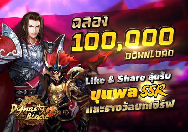 Dynasty Blade 2 สุดยอดเกมสามก๊ก MMORPG บนมือถือ ฉลองยอดดาวน์โหลดทะลุ 100,000 ดาวน์โหลด จัดหนักขบวนกิจกรรมและรางวัลชุดใหญ่ 7 วัน 7 กิจกรรม เด็ด!! มีอะไรบ้างไปดูกันเลย