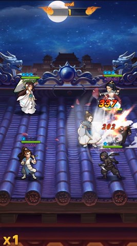แต่ถึงแม้ว่าเกมจะโจมตีแบบออโต้ ดูเฉยๆ แล้วจะไม่สนุก เพราะตัวเกมได้มีการเพิ่มลูกเล่นใหม่ที่เรายังไม่เคยเห็นแนวนี้มาก่อนสำหรับเกมกำลังภายในมุมมองจอแนวตั้ง นั่นก็คือการเล่นกับฉาก ในด่านเนื้อเรื่องสำคัญนั้น ใช่ว่าปราบศัตรูจนศัตรูหนีไปสู้อีกด่าน.. ไม่ใช่แบบนั้น นั่นเพราะว่าเกมจะมีลูกเล่นความต่อเนื่องของฉาก หรือก็คือ ตัวละครจะวิ่งข้ามฉากไปเลย แล้วก็มีการสู้ต่ออีกด้วย ซึ่งทั้งหมดภาพจะแสดงผลไหลลื่นราวกับกำลังนั่งดูการ์ตูนอยู่เรื่องหนึ่งเลยทีเดียว