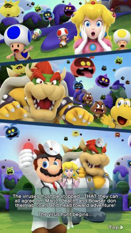 เมื่อเหล่าไวรัสถูกส่งเข้ามารุกรานโลกของเหล่าตัวละครจาก มาริโอ ไม่ว่าจะเป็นตัวเอกหรือตัวร้ายจึงต้องร่วมใจกันมาสวมบทเป็นคุณหมอออกไล่ล่า และ จำกัดเหล่าไวรัสร้ายออกไปจากโลกของเขาอีกครั้ง โดยครั้งนี้พวกเขากลับมาในรูปแบบของเกมส์มือถือให้เราสามารถสนุกกันได้ทุกที่ ตลอดเวลา ใครชอบเกมส์เพลินๆ ไม่ควรพลาด
