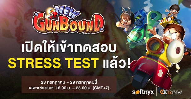 บริษัท Electronics Extreme เปิดให้ร่วมทดสอบ Stress Test จากเกมใหม่ New Gunbound ซึ่งเป็นการเปิดให้เข้าทดสอบรอบแรกสำหรับผู้ที่ลงทะเบียนอยู่ใน Phoenix Zone และ Yeti Zone และจะเปิดโซนอื่นเพิ่มเร็วๆ นี้ โดยจะเปิดให้เข้าร่วมทดสอบได้ตั้งแต่วันนี้ – 29 กรกฎาคม 2562 เฉพาะช่วงเวลา 16:00 – 23:00 น. เท่านั้น ในช่วง Stress Test คือช่วงการทดสอบเกมแบบปิด ซึ่งจะเปิดโอกาสให้ผู้เล่นทั่วไปจำนวนหนึ่งตามเกณฑ์ที่กำหนด สามารถเข้ามาทดสอบเกมร่วมกับทีมงานผู้พัฒนาได้ โดยยังมิใช่ตัวเกมเวอร์ชั่นจริงที่เปิดให้เล่นตามปกติแต่อย่างใด และในระหว่างการทดสอบอาจจะพบเจอปัญหา รวมไปถึงมีความจำเป็นต้องปิดปรับปรุงระบบเพื่อแก้ไขปัญหาต่างๆ บ่อยครั้งตลอดช่วงระยะเวลาที่เปิดให้ทดสอบ