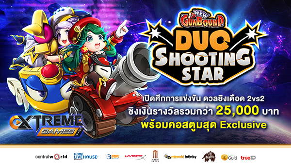 เตรียมพบกับ New Gunbound ครั้งแรกอย่างเป็นทางการได้ที่งาน Extreme Games 2019 คุณจะได้ทดลองเล่นตัวเกมเวอร์ชั่นล่าสุดก่อนใคร (เวอร์ชั่นปรับปรุงหลังจากช่วงทดสอบภายใน Stress Test) พร้อมกันนี้ขอเชิญเหล่าเทพ Gunbounder มาร่วมประชันฝีมือความแม่นยำ กับการแข่งขันแมทช์พิเศษ Duo Shooting Star ค้นหาผู้เล่นที่จะได้ครองครองเงินรางวัล และเป็นเจ้าของชุดคอสตูมสุด Exclusive เอาไปสวมใส่ก่อนใครในเซิร์ฟเวอร์ แล้วมาเจอกันวันอาทิตย์ที่ 1 กันยายนนี้ ณ GMM Live House ชั้น 8 CentralWorld