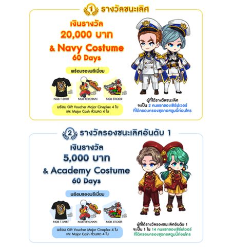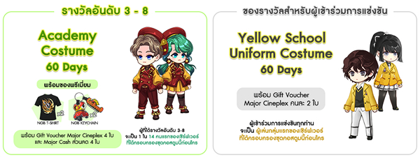 ของรางวัลประเภทคอสตูม จะได้รับเมื่อเซิร์ฟเวอร์เปิดให้บริการอย่างเป็นทางการ และจะได้รับตามเพศของตัวละครเท่านั้น