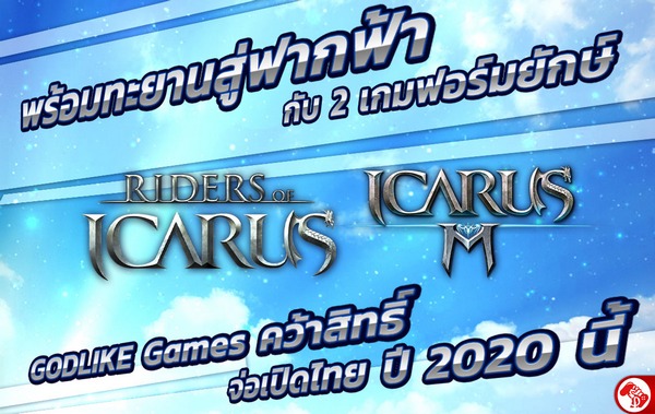 พร้อมทะยานสู่ฟากฟ้าไปกับเกมออนไลน์สุดฮอตจากเกาหลี เมื่อทาง GODLIKE Games จัดงาน GODLIKE Games Media Coference Q4 2019 เพื่อแถลงข่าวการเซ็นสัญญาคว้าสิทธิ์เกมฟอร์มยักษ์ระดับโลก Icarus และ Icarus M พร้อมเปิดให้บริการในไทยปี 2020 นี้