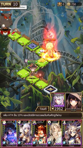ดังนั้นหากมีศัตรูอยู่ห่างไปอีก 4 ช่อง แบบตรงๆควรจะใช้ Piercer Dicer โจมตีก่อน หรือหากไม่มีให้ใช้ Melee Dicer ที่มีการเดิน 5 ช่องขึ้นไป ก็จะสามารถเข้าไปโจมตีได้ สำหรับการโจมตีของศัตรูจะโจมตีเมื่อเราเดินแล้วมาหยุดในระยะโจมตีของศัตรู หรือลองแตะที่ไดเซอร์เพื่อดูระยะโจมตีก่อนก็ได้ หรือเอาแบบง่ายสุด เลือกใช้ไดเซอร์ที่มี Icon Attack จะสามารถโจมตีได้