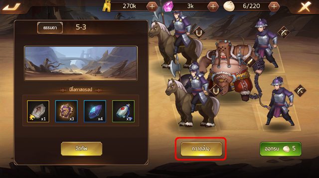 จะเป็นหนึ่งในฟีเจอร์สุดท้ายที่จะปลดล็อคได้หลังจากผ่านด่าน 5-8 โดยจะสามารถเอาไอเท็ม ผลงานศึก และเงิน ในการไปอัพเกรดตัวละครยกทีมที่เรามี แยกตามคลาส ซึ่งจะช่วยเพิ่มค่าพลังโจมตี, ค่าป้องกัน รวมไปถึงจะเอาอัพเกรดโรงผลิตทองเพื่อเพิ่มเงินที่จะได้ก็ยังทำได้ด้วย โดยไอเท็ม ผลงานศึก จะได้จากการส่งทีมไปเล่นโหมด ท้าทาย ซึ่งจะปลดล็อคในด่าน 5-8 เช่นกัน
