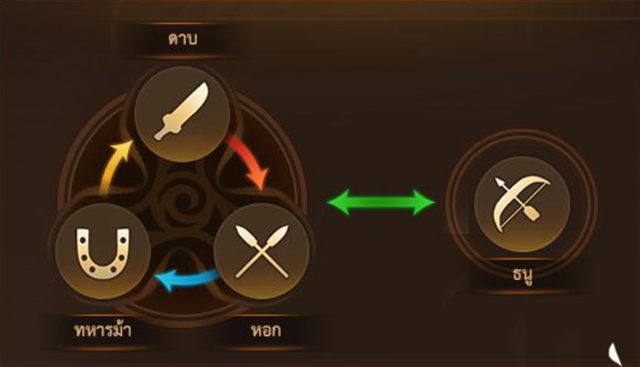 ก่อนอื่น คนเล่นจะต้องสังเกตก่อนว่า ศัตรูที่จะเจอนั้นจะมีพวกใช้อาวุธอะไรบ้าง เมื่อรู้แล้ว คนเล่นจะต้องเลือกเอาตัวละครที่ใช้อาวุธได้เปรียบอีกฝ่าย ยืนอยู่ตามแถวของอีกฝ่ายเพื่อไม่ให้ทีมตนเองเสียเปรียบ (หลักการได้เปรียบเสียเปรียบของเกมนี้จะเหมือนระบบธาตุ แต่เกมนี้จะใช้เป็นอาวุธแทน) ง่ายๆ ว่า ต้องมีตัวละครจากสายอาวุธต่างๆ ให้ครบพร้อมลุยเสมอ