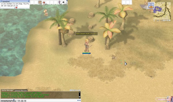 โดยเจ้าหมาตัวที่เราจะต้องไปหาอยู่เหนือโอเอซิสมาเล็กน้อย เมื่อคุยกับมันจะได้รับเควสต์ในการกำจัด Condor 10 ตัว เมื่อครบให้กลับมาคุยอีกมันจะให้เราไปกำจัด Baby Desert Wolf อีก 10 ตัว และ สุดท้ายจะให้เรากำจัด Scorpion อีก 5 ตัว เมื่อทำเสร็จให้กลับไปหา NPC ที่ให้เรามาทะเลทรายเธอจะให้เราไปห้องเก็บของเพื่อเบิกอุปกรณ์สวมใส่ได้ฟรี โดยเราต้องเดินมาทางขวาเลยบอร์ดที่รับเควสต์จะมีวาร์ปไปทางด้านบนให้เดินเข้าไปยังห้องในสุดคุยกับ NPC ที่อยู่ข้างตู้เขาจะให้ไอเทมสวมใส่เรามา และเมื่อ เลเวล 26 จะมีเควสต์เพื่อมอบอาวุธให้เราอีกด้วย