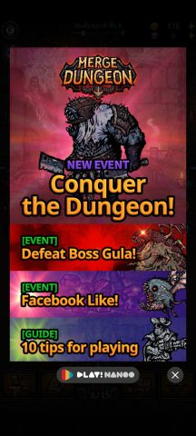 วันหยุดนี้หากใครไม่มีเกมเล่นเราขอเสนอ Merge Dungeon จาก NANOO COMPANY เกมแนว Dungeon Fantasy ผสม RPG-MERGE ดันเจี้ยนสุดลึกลับและมืดมิด ที่เราจะต้องนำฮีโร่ทั้ง 4 คนฝ่าฝันดันเจี้ยน เพื่อไปปราบจอมปีศาจ ด้วยผสมอุปกรณ์หรือก็คือคือการ MERGE ไอเทมที่เหมือนกัน เพื่อให้ได้ไอเทมที่แข็งแกร่งกว่าเดิม