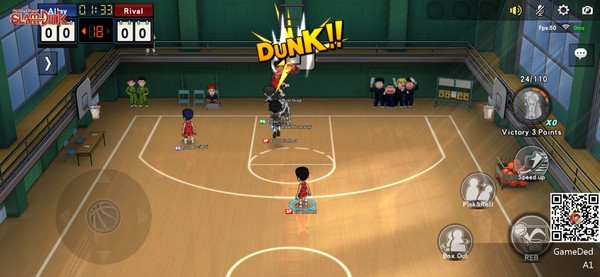 SLAM DUNK เกมส์มือถือแนว บาสเกตบอล ที่นำตัวละครลิขสิทธิ์แท้จากอนิเมะเรื่องดังกลับมาให้เราได้พบกับพวกเขากันอีกครั้ง เราสามารถอัพเกรดตัวละครที่เราชื่นชอบ เพื่อนำไปร่วมทีมกับผู้เล่นคนอื่น เพื่อแข่งขันกับผู้เล่นฝั่งตรงข้าม ที่สามารถมันส์ได้แบบ Real-Time โดยในเกมส์จะมีโหมดการเล่นที่หลากหลายตั้งแต่ 1VS1, 2VS2 และ 3vs3 ที่มีให้เล่นทั้งแบบ Normal, Rank และ Tournament นอกจากนั้นในเกมส์ยังมีโหมดเนื้อเรื่องที่จะพาเราย้อนวันวานไปกับการตัดเนื้อเรื่องแบบ Original กลับมาให้เราได้ดูกันอีกครั้ง