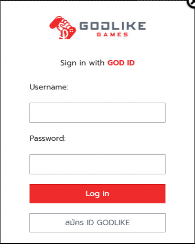 และให้ผู้เล่นกดที่ปุ่ม ลงทะเบียน หรือ LOGIN ด้วย GOD ID เมื่อกดแล้วจะมีหน้าต่างขึ้นมาให้ใส่ GOD ID