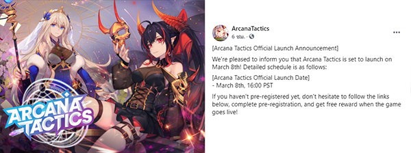 ในที่สุดก็ถึงเวลาที่หลายคนกำลังรอคอยเมื่อทีมงาน Arcana Tactics ได้ออกมาประกาศว่าพวกเขาเตรียมเปิดให้ บริการอย่างเป็นทางการ ในวันที่ 9 มีนาคม 2564 ในเวลาประมาณ 7 โมงเช้า ตามเวลาบ้านเรา เหล่าสาวกที่ติดใจตั้งแต่ช่วง CBT ที่ผ่านมาเตรียมตัวให้พร้อม เช็คกันให้ดีว่าลงทะเบียนล่วงหน้ากันหรือยังทั้ง iOS และ Android
