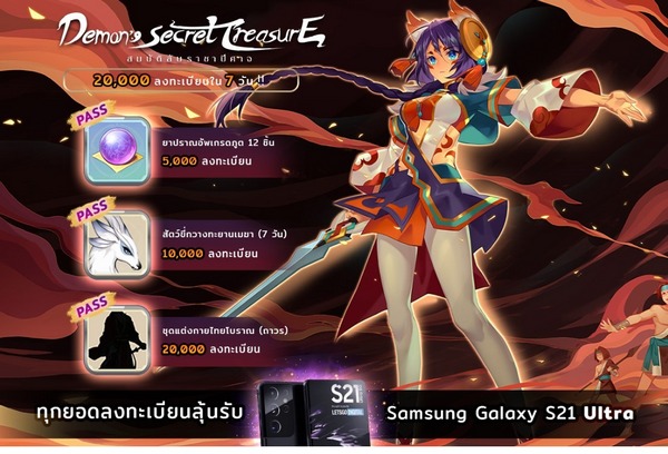 ด่วน! โอกาสสุดท้ายที่จะได้เป็นเจ้าของ Samsung Galaxy S21 Ultra เพียงลงทะเบียนล่วงหน้า “Demon’s Secret Treasure สมบัติลับราชาปีศาจ” พร้อมกิจกรรมรับ PS5! ถึงแค่ 4 มี.ค.นี้เท่านั้น!!