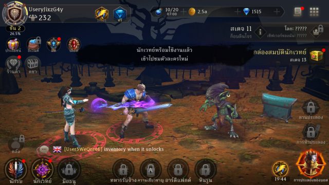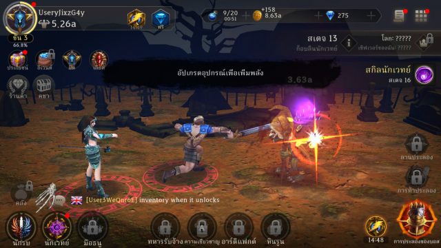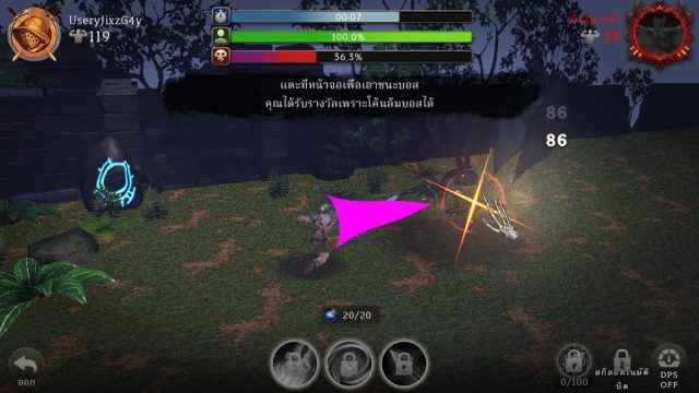 และเมื่อตัวละครพร้อมคนเล่นก็จะสามารถกดตีบอสได้ โดยจะสามารถตั้งออโต้ให้ใช้สกิลและไปตีบอสตัวต่อไปได้เมื่อผ่านไปจนถึงเลเวลระดับหนึ่ง แต่เกมนั้นจะไม่ไม่ออโต้ตลอด ทันทีที่ตัวละครสู้ไม่ไหวจะหยุดการออโต้สู้กับบอสทันที