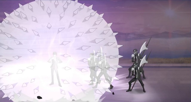 ฮิบาริอัญเชิญอาวุธกล่อง(เม่นเมฆาโรล) ทำเป็นโล่กลมป้องกันตัวเอง และโจมตีศัตรูรอบข้างอย่างบ้าคลั่ง สร้างความเสียหายสูงสุดถึง 1660%