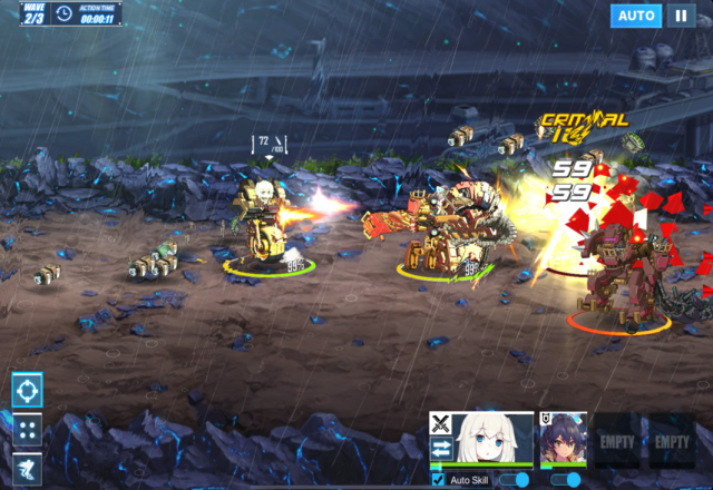 ระบบเกมนั้นจะเป็นเกมแนวตะลุยด่านโดยใช้ตัวละครในการเล่นถึง 4 ตัวละคร โดยแต่ละตัวละครจะมีหุ่นรบเป็นประเภทของตัวเอง เช่น เป็นแนวหน้า, ปืนกลเบา, ปืนกลหนัก รวมไปถึงสไนเปอร์ไรเฟิลที่จะอยู่ด้านหลัง เกมมีระบบการเล่นแบบออโต้ แต่คนเล่นจะสามารถเลือกคุมตัวละครได้ 1 คน (อีก 3 คนจะสู้เอง) และกดสลับเปลี่ยนตัวละครขณะสู้ได้ เพื่อวางแผนแก้เกมที่เจอได้ในแต่ละสถานการณ์ได้เอง
