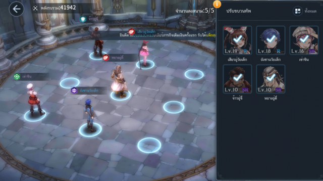 คนเล่นจะสามารถจัดทีมได้ 5 ตัวละคร วางได้ 9 ตำแหน่ง โดยตัวละครจะวิ่งเข้าไปสู้กับศัตรูเอง และให้เราอาศัยจังหวะกดใช้สกิล โดยทุกตัวละครจะมีสกิลให้ 1 ไม่มีท่าไม้ตาย ทำให้เกมนี้เล่นได้ง่าย กดออโต้ไปเลยก็ได้ หากค่าพลังถึงก็จะสามารถผ่านได้ไม่ยากอะไรนัก