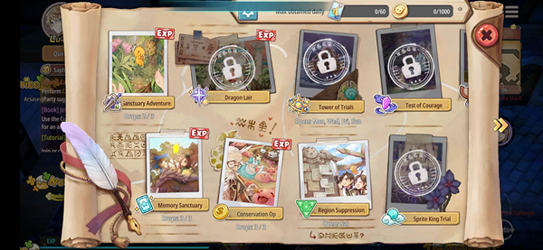 นอกจากการเดินเนื้อเรื่อง ผ่านเควสต์ ที่มีการเล่าเรื่องอย่างสนุกสนานผ่านแผนที่ต่างๆ ที่จะเป็นการให้ค่าประสบการณ์หลัก และ ปลดล็อกเนื้อหาต่างๆ ให้เราแล้วืภายในเกมส์ยังเน้นระบบของดันเจี้ยนหลากหลายรูปแบบให้เราได้สนุกกันอย่าง Sanctuary Adventure, Memory Sanctuary, Dragon Lair, Conservation Op, Tower of Trails และ ดันเจี้ยนอีกหลากหลายที่รอท้าทายเราอยู่