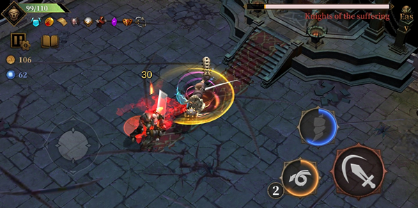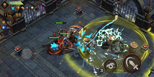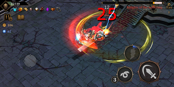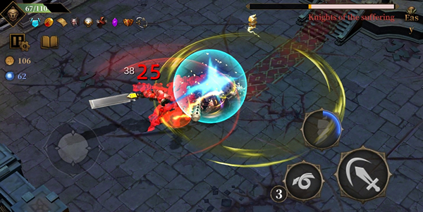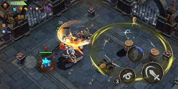 รูปแบบการต่อสู้แบบฮาร์ดคอร์ ที่นอกจากจะไม่มีระบบ Auto ช่วยอำนวยความสะดวกในการเล่นให้เราแล้ว ขณะที่ต่อสู้ไม่ใช่แค่กระประเคนเดเมจใส่มอนส์เตอร์เพียงอย่างเดียวตามแบบฉบับของเกมมือถือสมัยปัจจุบัน แต่เราต้องคอยกะจังหวะการหลบ ทิศทางในการเข้าโจมตีให้ดี ไม่อย่างนั้นคุณไม่มีทางรอดจนไปเห็น Boss ของดันเจี้ยนแน่นอน การผสมผสาน อาวุธหลัก และ อาวุธรอง เพื่อชัยชนะ สำหรับ อาวุธหลัก นั้นจะมีให้เราเลือกมากถึง 8 ชนิด แต่ละชนิดก็มีรูปแบบการโจมตีที่แตกต่างกันไป ทั้งระยะ ความรุนแรง ความรวดเร็ว จะใช้ชนิดไหนคงต้องดูรูปแบบการเล่นของเราเป็นหลัก ระบบอาวุธรอง เองก็มีให้เลือกหลากหลาย ท้ังเสาไฟ สนามสายฟ้า ยาเร่งการโจมตี นอกจากนั้นยังมีอุปกรณ์เสริมที่จะส่งผลพิเศษอีกหลายชนิด การผสมผสานเหล่านี้จะเกิดขึ้นไม่ซ้ำเพราะทุกครั้งที่ลงดันเจี้ยน ไม่ว่าจะเป็น อาวุธหลัก อาวุธรอง และ อุปกรณ์เสริมอื่นๆ ที่เราจะเจอในฉากนั้นจะไม่ซ้ำกัน