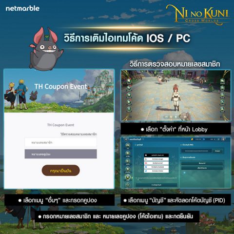 Ni no Kuni: Cross Worlds เกมอนิเมะสุดน่ารักแนวสวมบทบาท (MMORPG) จับมือร่วมกับ Dtac ฉลองการเปิดให้บริการอย่างเป็นทางการ มอบสิทธิพิเศษให้กับลูกค้าทุกเครือข่าย รับไอเทมคูปองสุ่มคอสตูม ฟรี! ที่ Gaming nation ด้วยขั้นตอนง่ายๆ เพียงคลิก > ลิงก์ สมัครสมาชิกและทำตามขั้นตอน และ กรอกโค้ด ‘NEWNINOKUNI’ ผ่านเว็บไซต์ Gaming nation เพื่อแลกรับไอเทมฟรี!! ไม่รีบไม่ได้แล้ว! ตั้งแต่วันนี้ถึง 30 มิถุนายน นี้เท่านั้น!!
