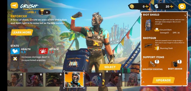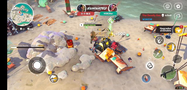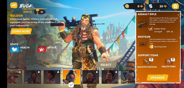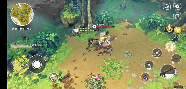 การยิง ที่ไม่ต้องมานั่งเล็ง แค่แตะปุ่มยิง ก็จะเป็นการลั่นไกปืนไปในทิศทางของศัตรูที่ใกล้ที่สุดทันที แต่ถ้าศัตรูของเราเคลื่อนที่อยู่ตลอด เราก็สามารถกดปุ่มยิงค้าง แล้วลากแนวยิงเพื่อดักทางก็ได้ แม้จะไม่ต้องเก็บปืนเก็บเกราะแบบเกมส์อื่น แต่เราสามารถ เปิดกล่อง เปิดหีบ เพื่อหาไอเทมเสริมอย่าง กับดัก ยาเพิ่มพลัง ยาเพิ่มความเร็ว ยาเพิ่มเลือด ระเบิดขวด เป็นต้น ซึ่งเหมือนกับเป็น Skill เสริมช่วยให้เราจัดการฝ่ายตรงข้ามได้ง่ายขึ้น ระบบเด่นจะอยู่ที่ระบบ ตัวละคร ที่จะมีอาวุธประจำตัว 2 ชนิด แถมด้วยสกิลให้ใช้ แต่ละคนก็จะมีสกิลที่แตกต่าง จุดเด่น จุดด้อยที่ไม่เหมือนกัน สามารถอัพเกรดค่าสถานะต่างๆ และ อัพเลเวลตัวละครจากการรวบรวมเศษตัวละครได้ด้วย