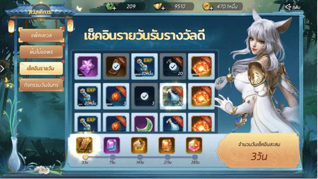 กิจกรรมล็อกอิน 7 วัน รับของรางวัลฟรีทุกวัน! เพียงเข้าเกมแล้วไปที่หัวข้อ “ของขวัญ” และกดลงนาม ก็ได้รับรางวัลไปแบบฟรี ๆ (ขอแนะนำว่า 7 วันแรกห้ามพลาด!) และ กิจกรรมเช็คอิน 30 วัน เพียงเข้าเกมแล้วไปที่หัวข้อ สวัสดิการ > เช็คอินรายวัน ก็สามารถกดรับรางวัลได้ทันที หากวันไหนลืมเข้ามากดรับรางวัล ก็สามารถใช้ไอเทมหยกจิต เพื่อรับรางวัลย้อนหลังได้
